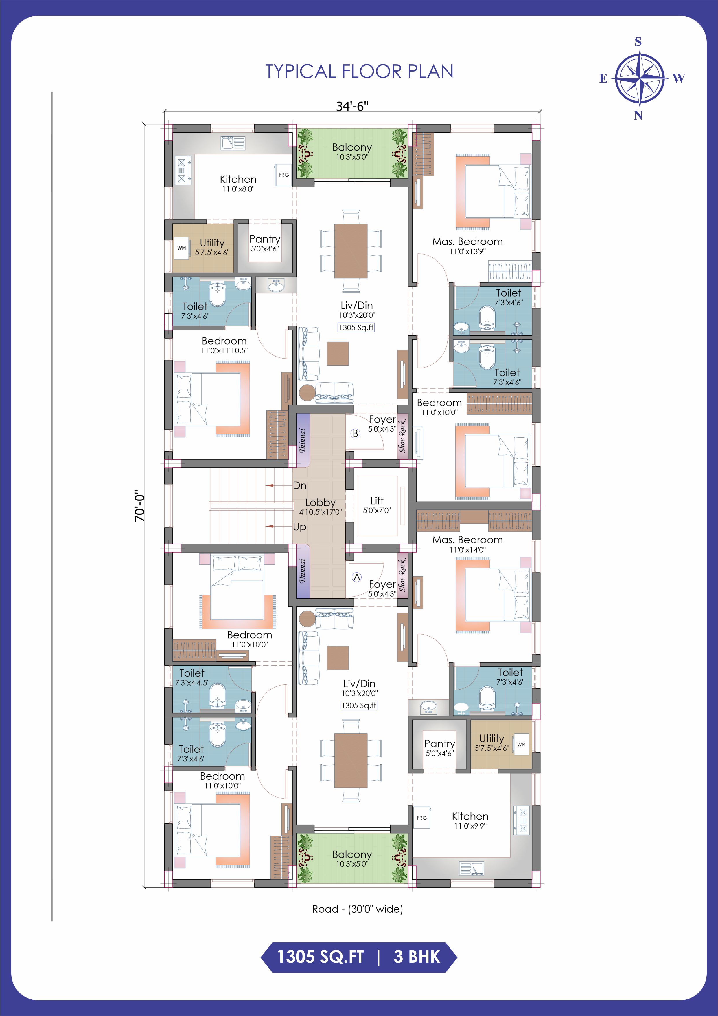 | Third Floor | Flat 3B | 1305 |