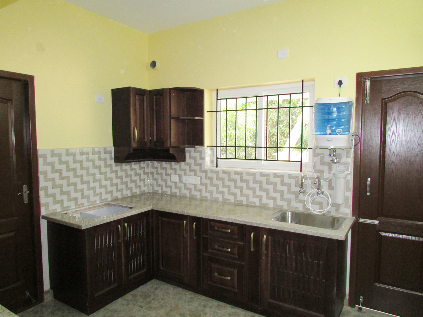 Corporation and borewell water supply in the kitchen, service and bathrooms.