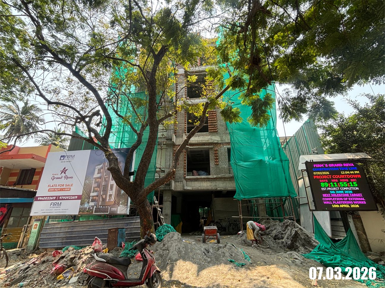 Anti termite pest control treatment will be done at footing, around plinth beam, Brickwork and paving block laying stages.